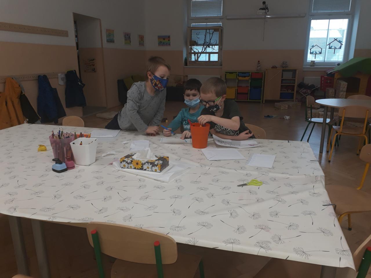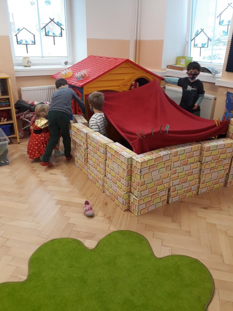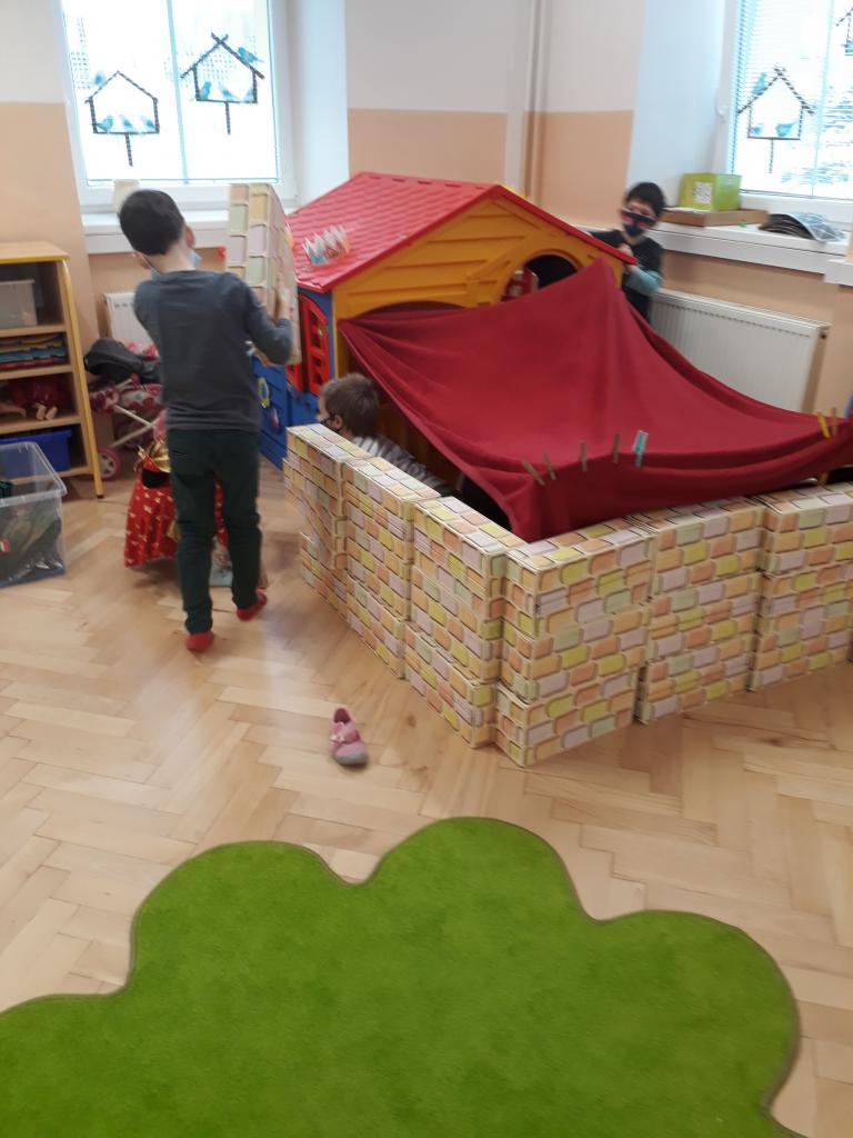V lednu se nás sešlo ve škole zase o malinko míň, i tak si užíváme, tvoříme a hrajeme si. Rádi si stavíme bungry, schováváme se, každý den si hrajeme s velkými kostkami, vyrábíme i tvoříme.